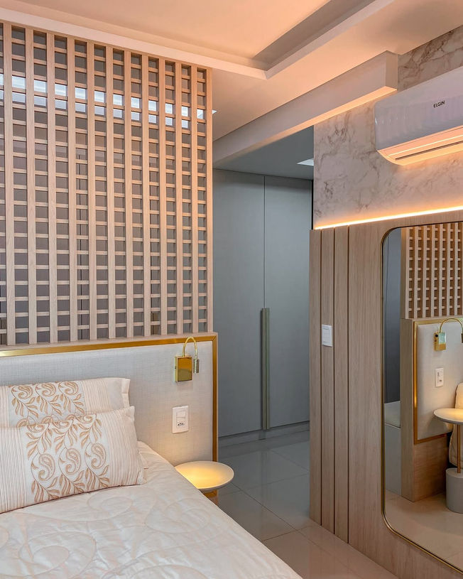Para este projeto escolhemos o MDF Oásis da duratex para trazer graciosidade e sutileza ao ambiente. Cada detalhe foi cuidadosamente pensado para criar uma atmosfera única, que encanta e surpreende. Além disso, o toque nobre do MDF Atenna da Arauco traduz fielmente a elegância de um mármore nobre, elevando o conceito da suíte a um patamar de sofisticação incomparável.